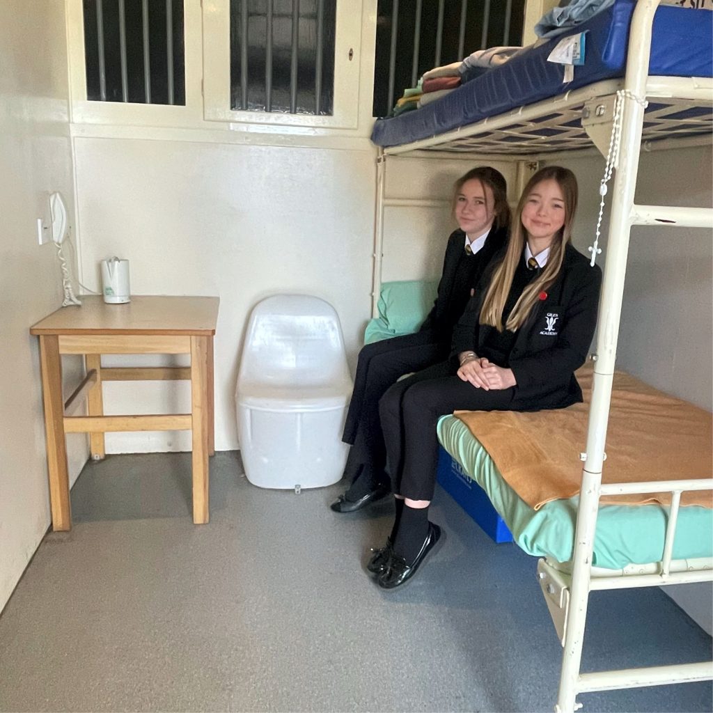 The Prison Me No Way roadshow includes bringing a realistic prison cell to the school, in a specially modified van that students can see the conditions that inmates in a shared cell have to live in. It was certainly eye-opening to see how small the bunk beds are and the lack of privacy with the toilet next to the table where you would be eating. The TV provided in the cell is not what you would have at home as it is very small and doesn’t have the choice of channels.